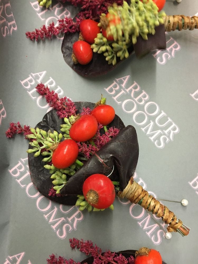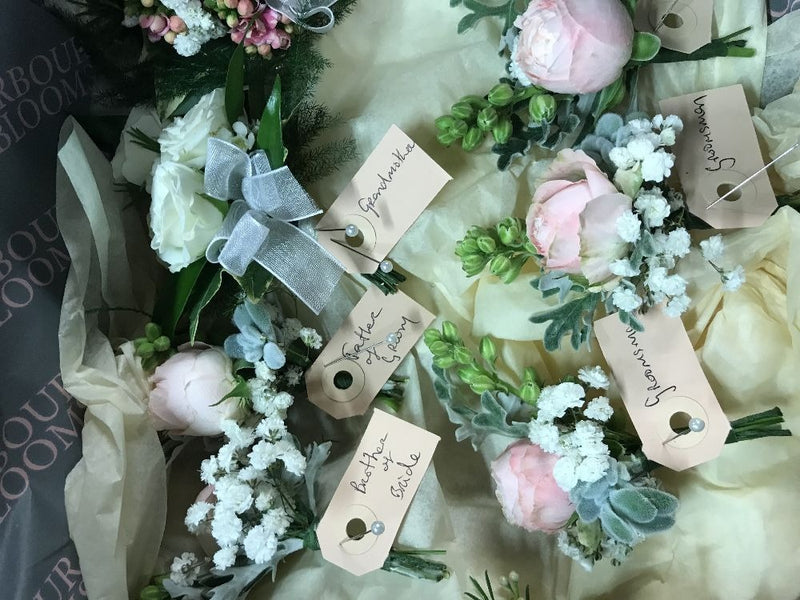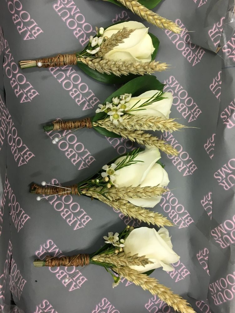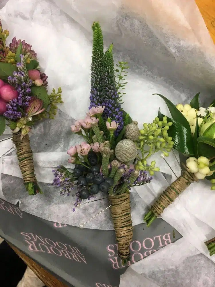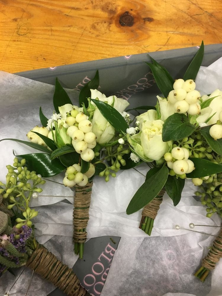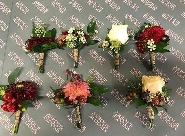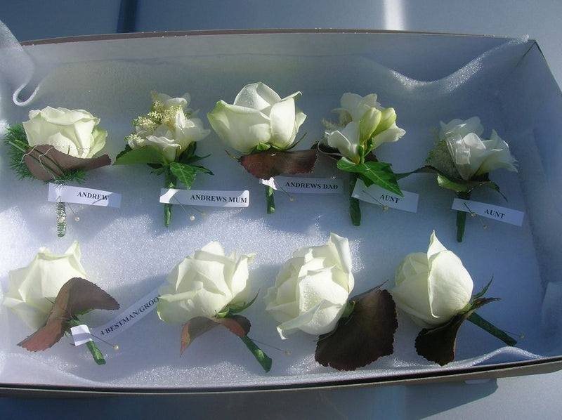A selection of Gents Buttonholes and Ladies Corsages.