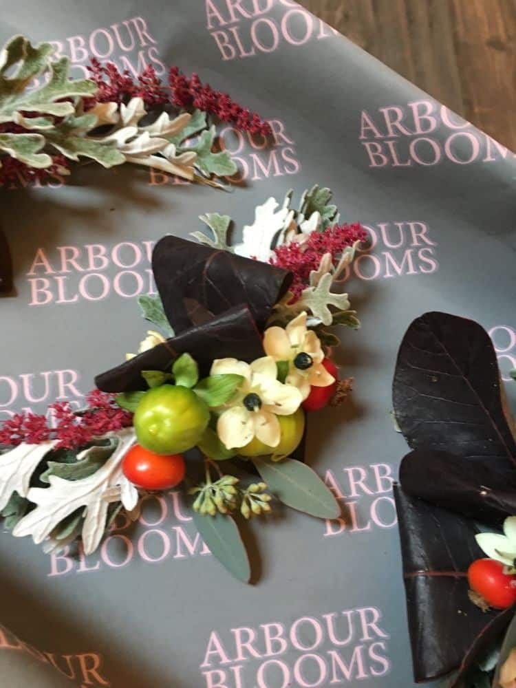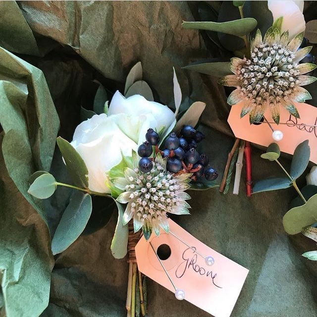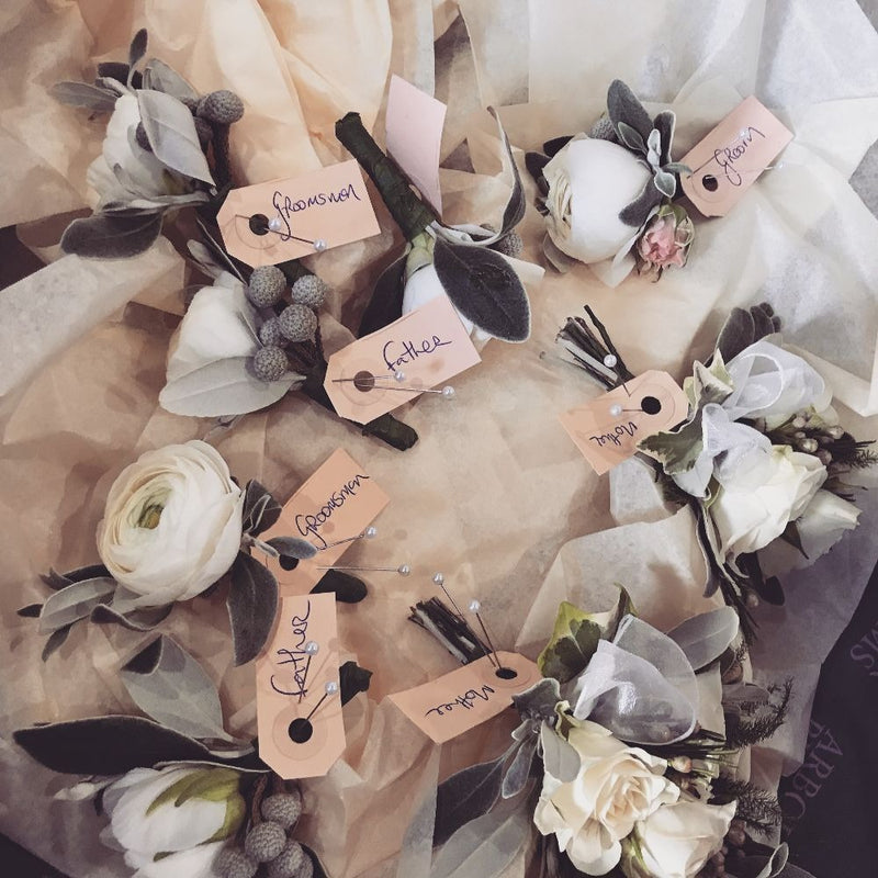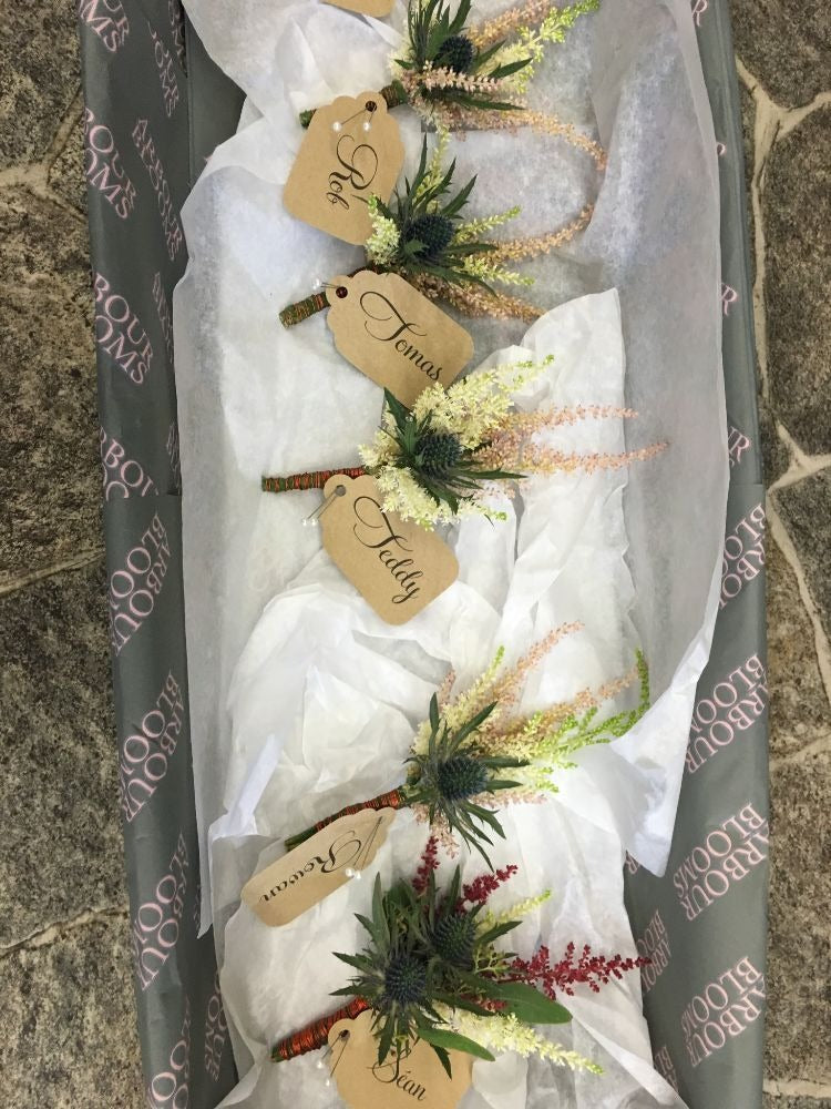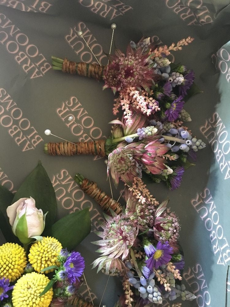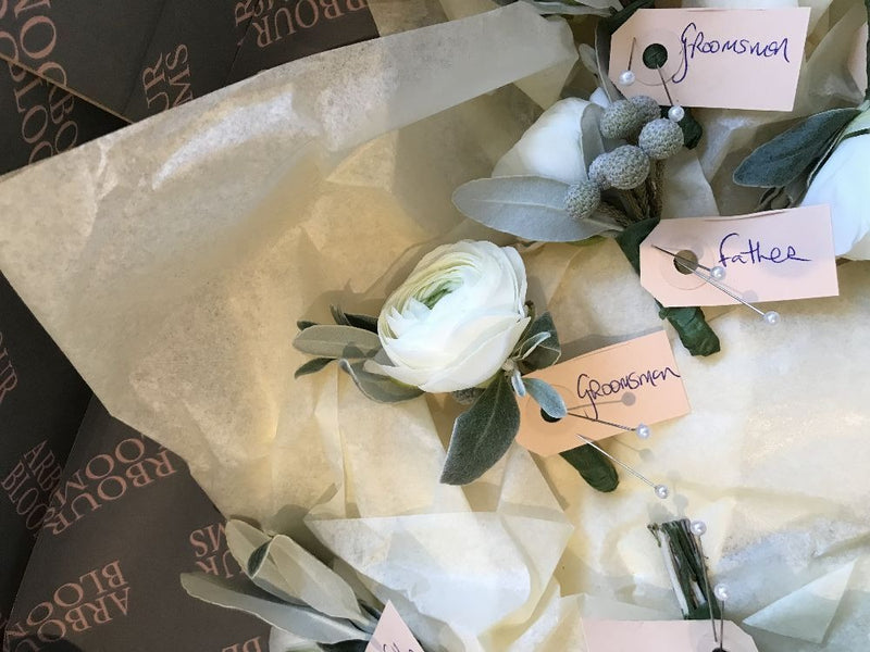 A selection of Gents Buttonholes and Ladies Corsages.