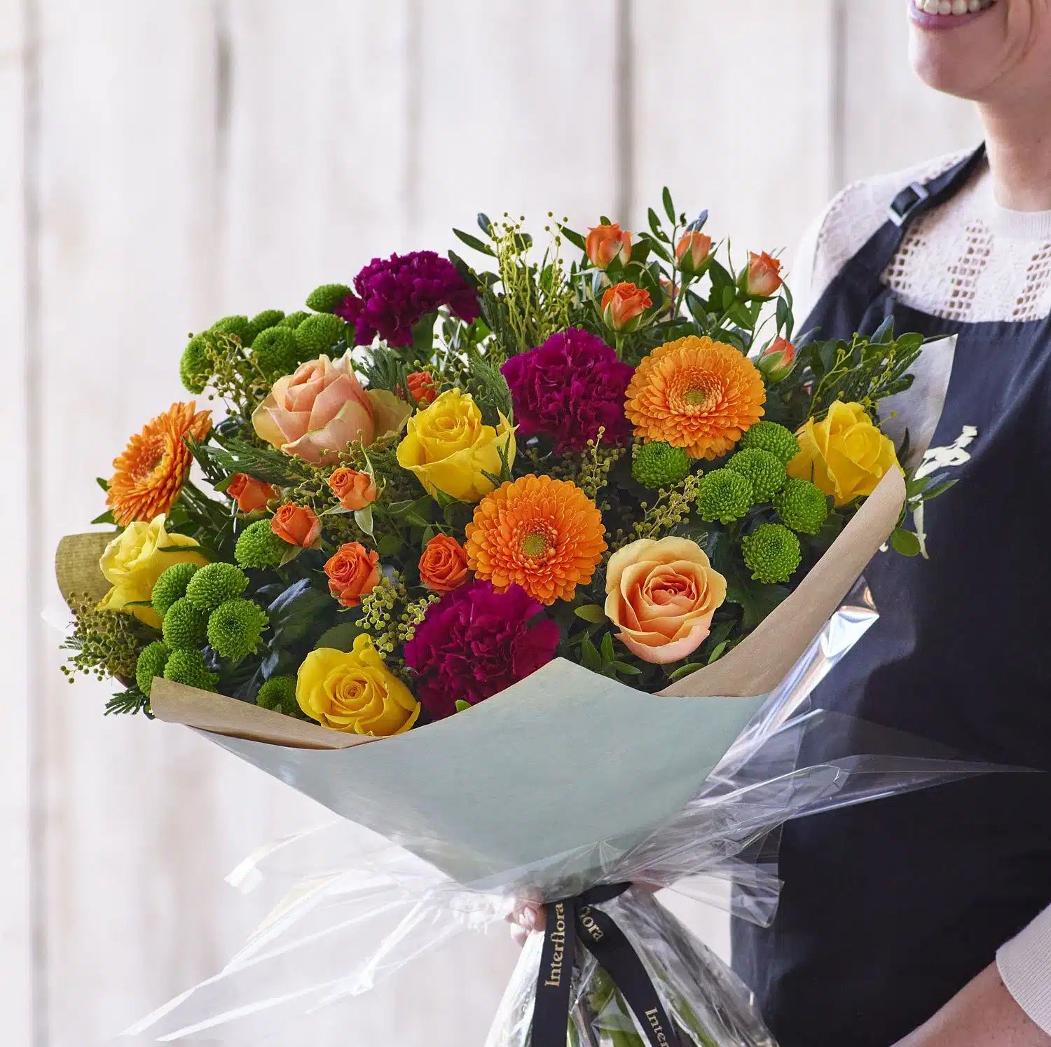 Each and every design is one-of-a-kind, created by an artisan florist using the freshest stems available on the day so, whilst your gift will look different to the one pictured, it’ll still be just as lovely.